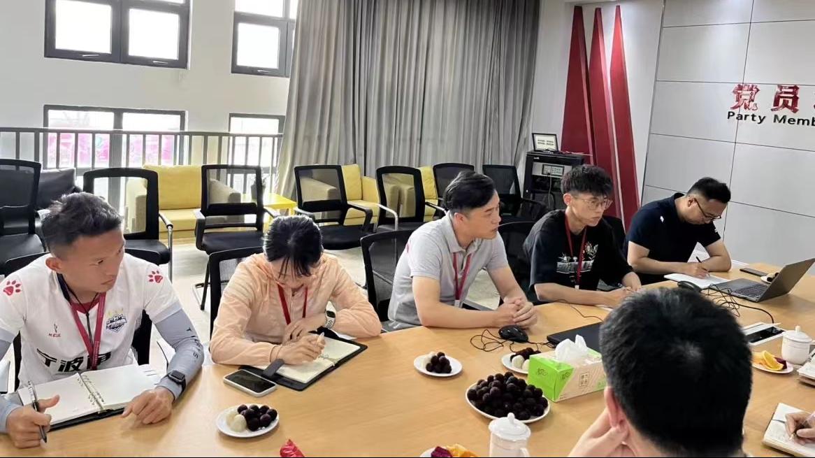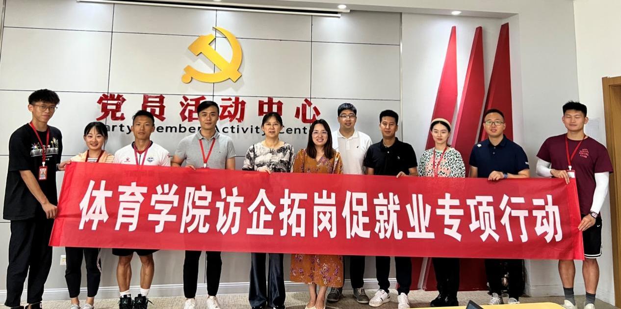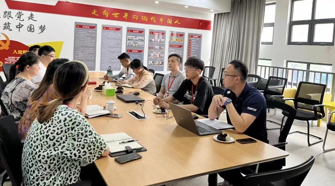 “访企拓岗”的第二站。江北外国语艺术学校校长蒋仕昂、总务主任赵辰、体育教研组长邬丽玮以及体育教师马煜赟和校友实习生代表等人共同参与了座谈交流。