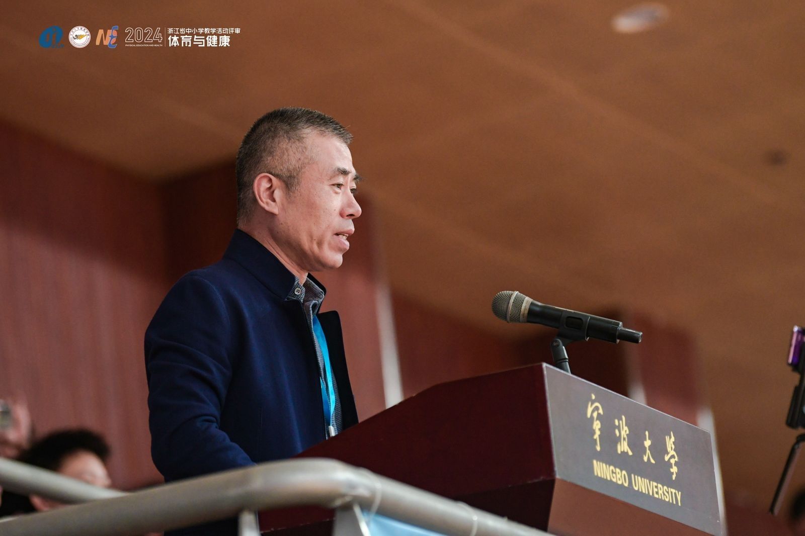 院长顾耀东,宁波市教育局教研室副主任叶琪飞,浙江省教育厅教研室体育教研员余立峰分别发表了致辞。评审内容涵盖广播操、武术操、队列队形、武术、体操、篮球、排球、足球等项目,包括说课模拟课、教学设计和教学录像课等环节,涉及小学、初中和高中三个组别体育教师。