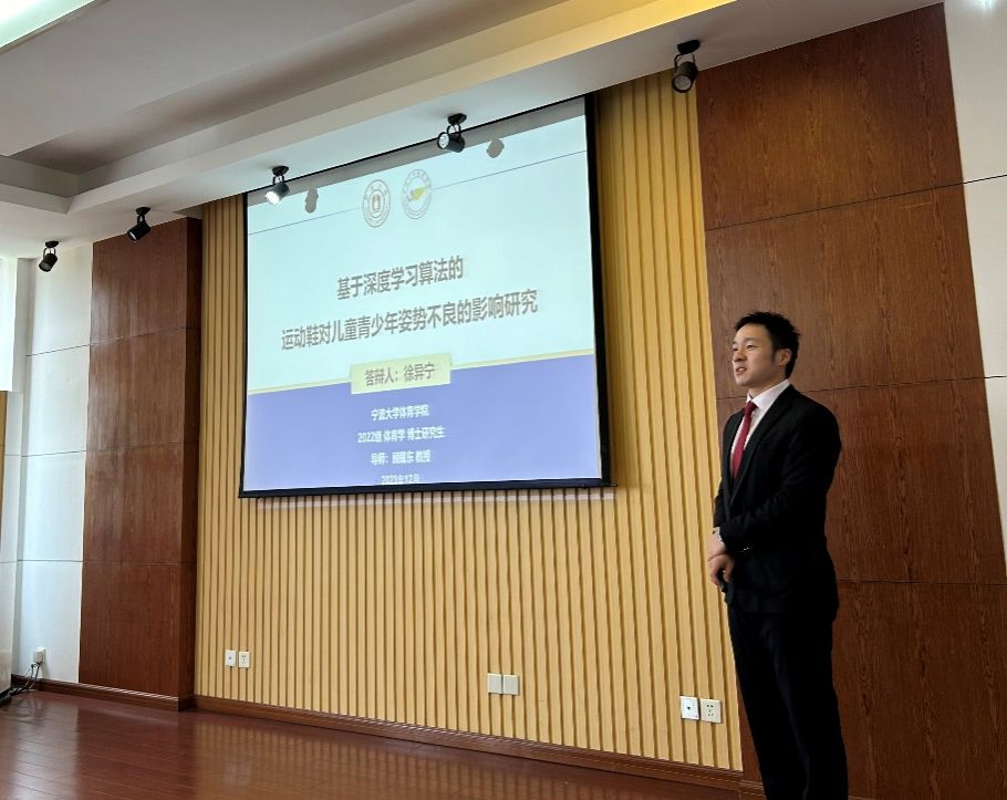 第一位报告人:2022级博士研究生徐异宁,开题题目为:《基于深度学习算法的运动鞋具对儿童青少年姿势不良的影响研究》