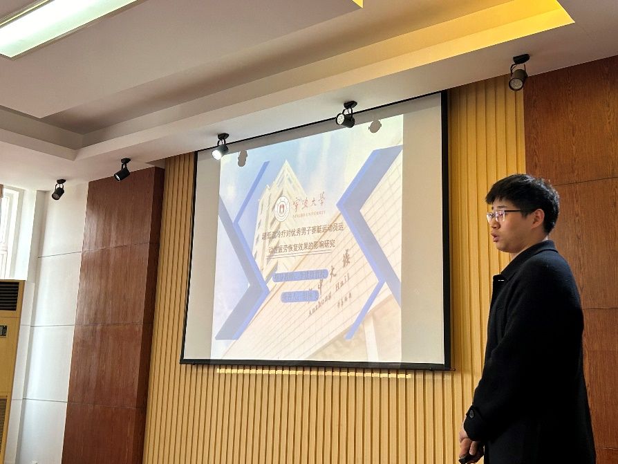 第二位报告人:2022级博士研究生但林飞,开题题目为:《超低温冷疗对优秀男子赛艇运动员运动性疲劳恢复效果的影响研究》