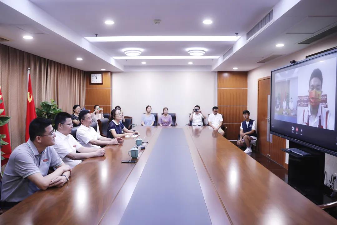 7月29日上午11点,校党委书记朱达、副校长赵全军与石智勇同学视频连线。朱达在连线中说:“智勇同学,为祖国摘得金牌,果然鸿运当头啊!”