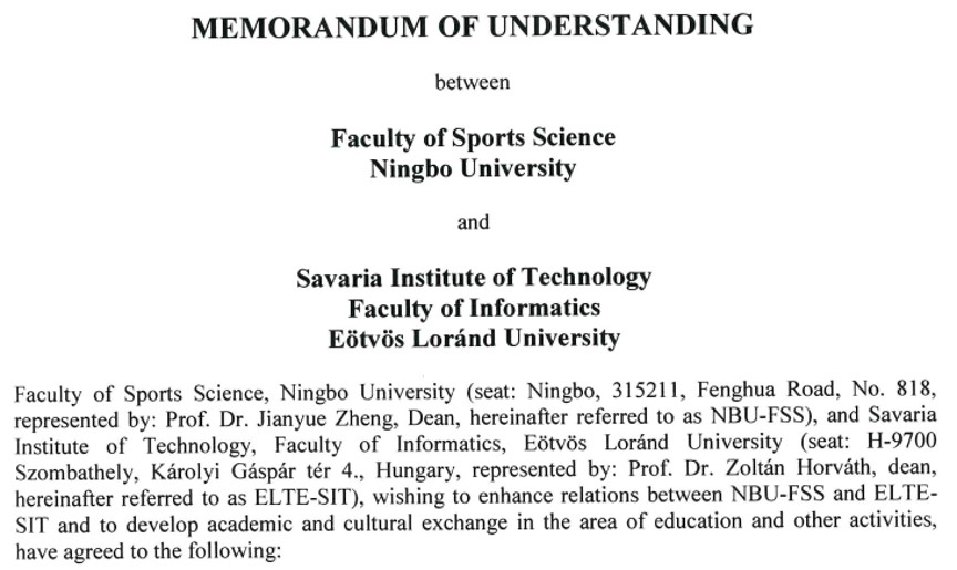 与匈牙利厄特沃什·罗兰(ELTE)大学签署合作备忘录