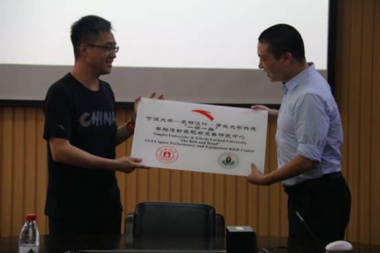 王有承一行首先参观了宁波大学体育学院大楼,听取了宁波大学体育学院执行院长顾耀东教授的对我院的基本情况、发展历程以及近些年在科研成果等方面的工作进展的介绍。王有承先生与我院师生分享了主题为“如何构建安踏鞋柔性敏捷高质高效的协同供应链体系”的讲座,介绍了安踏集团最新的运动装备科技和设计理念、协同高效发展的供应链体系,并成立了宁波大学-厄特沃什-罗兰大学共建“一带一路”安踏运动表现与装备研发中心。随后参观了我校高水平男子篮球队训练情况,对我院的科研、训练成绩给予了高度的评价和认可,并对我院篮球队支持安踏篮球鞋测试工作表示感谢。