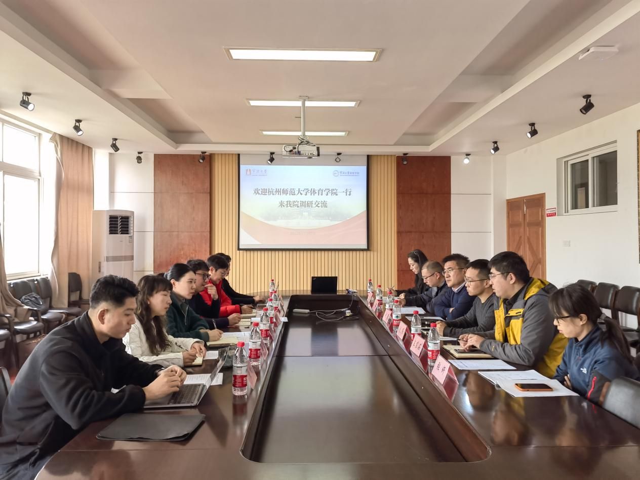 2025年1月7日上午,杭州师范大学体育学院副院长张磊一行到宁波大学体育学院开展调研工作。宁波大学体育学院副院长赵亮、党政办主任刘维、党委委员孙冬、体育系主任王东石、教务办主任华颖、运动系副主任张妍参加了本次调研会,会议由赵亮副院长主持。