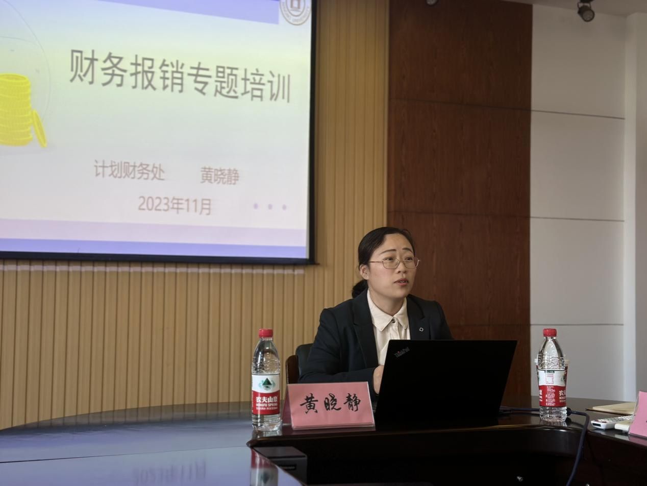 之后,计财处副处长黄晓静做了财务报销专题培训,介绍了2023年财务年终工作安排,并从校内规章制度、学校采购须知、报销基本规范及特殊经费要求四个方面进行了全面的培训,并针对财务报销的流程、基本要求、支付方式等进行了详细的说明与解释。
