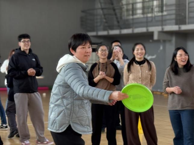 个人比赛中,随着一声令响,加油!加油!”比赛赛场瞬间淹没在震耳欲聋的口号声和呐喊声中,跳绳比赛中,选手们身姿矫健,动作灵活,手中的跳绳在空中划出一道道优美的弧线,现场气氛热烈非凡;旋转呼啦圈比赛中,老师们各展风采,有的弯腰、有的低头,利用各种技巧保持呼啦圈的平衡和持久旋转;踢毽子比赛中,教职工们以优雅灵活的身姿与跳跃起伏的毽子共舞,绘出了一幅活力四射、其乐融融的图卷;飞盘掷准比赛中,老师们摇身一变成了身手不凡的“飞盘高手”,引来阵阵惊叹!