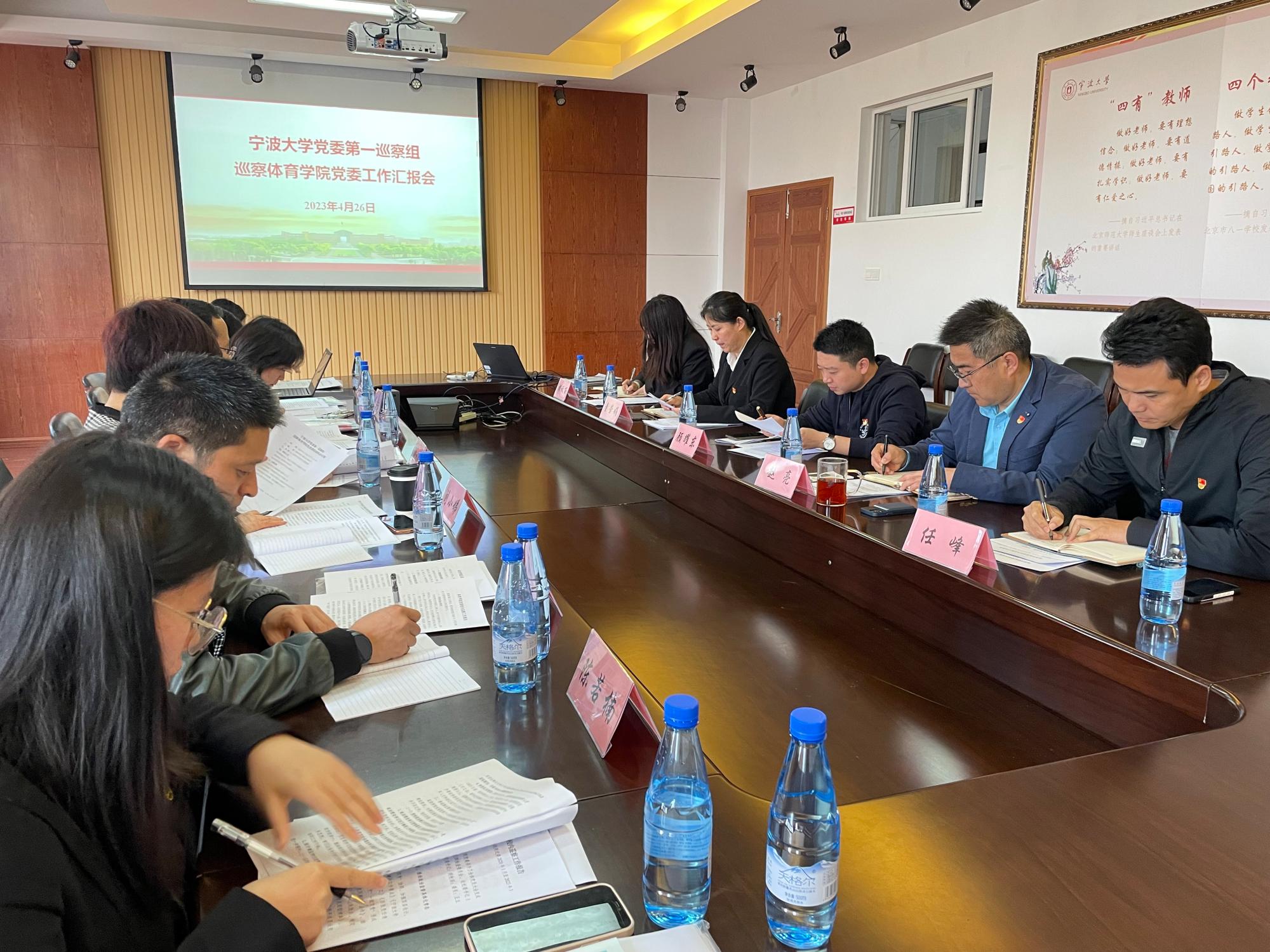 动员会后,校党委第一巡察组组长郑礼平在体育学院大楼408会议室主持召开了学院党委工作汇报会。巡察组全体成员和学院党政领导班子参加了会议。