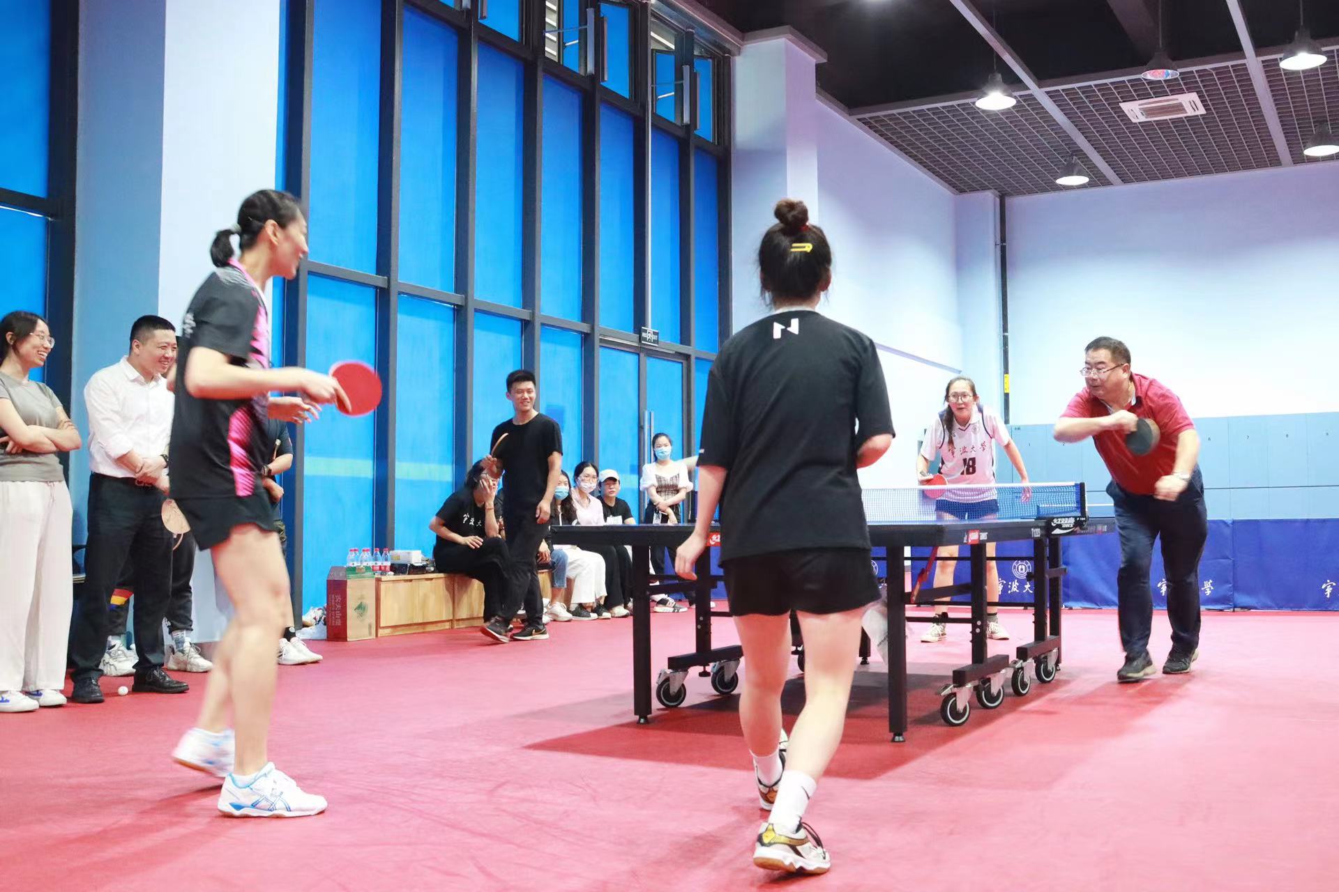 6月10日下午,宁波大学副校长汪浩瀚来到周亦卿体育馆乒乓球馆,与体育学院2020学硕班的同学们用“小球”带动交流,用赛事增进情感。宁波大学党校办副主任徐崇贤,体育学院执行院长顾耀东,竞赛训练中心党支部副书记邵诗蕊,2020学硕班班主任张妍参与本次活动。