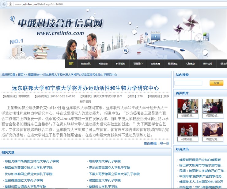 俄罗斯远东联邦大学与宁波大学合作开办运动活性和生物力学研究中心