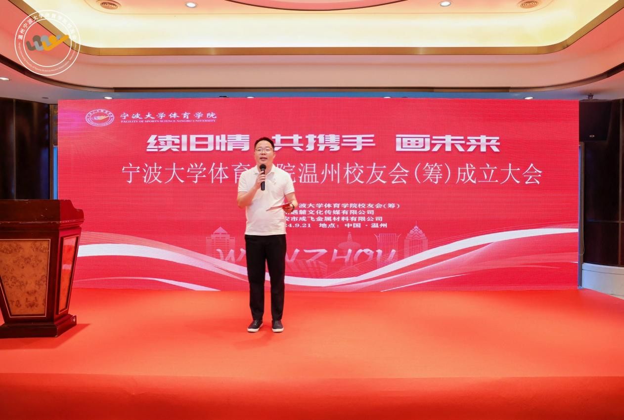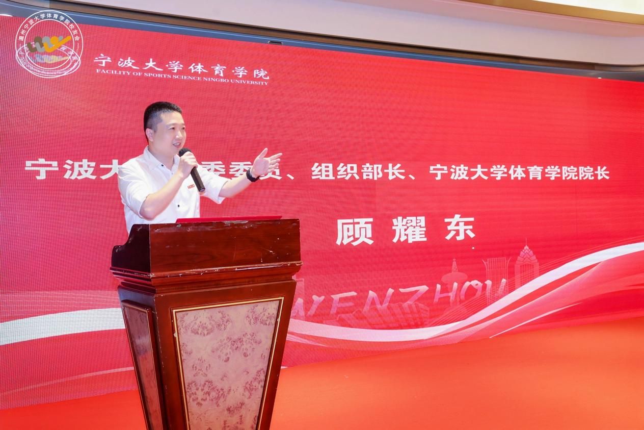 叙旧情,共携手,画未来。9月21日,宁波大学体育学院温州校友会成立大会暨授牌仪式在浙江省温州市隆重举行。宁波大学党委委员、组织部部长、体育学院院长顾耀东出席了本次大会。宁波大学体育学院党委书记童莹娟、副院长任峰、党委副书记胡秋丽、校友办主任顾慧亚、校友办副主任李德义、蒋健保教授、团委书记陈英英、宁波大学温州校友会副会长姜侠、宁波大学温州校友会秘书长童达武、宁波大学温州校友会副秘书长周梦、宁波大学体育学院各地校友会代表及温州热心校友等90余人相聚一堂,共同见证了宁波大学体育学院温州校友会的成立。