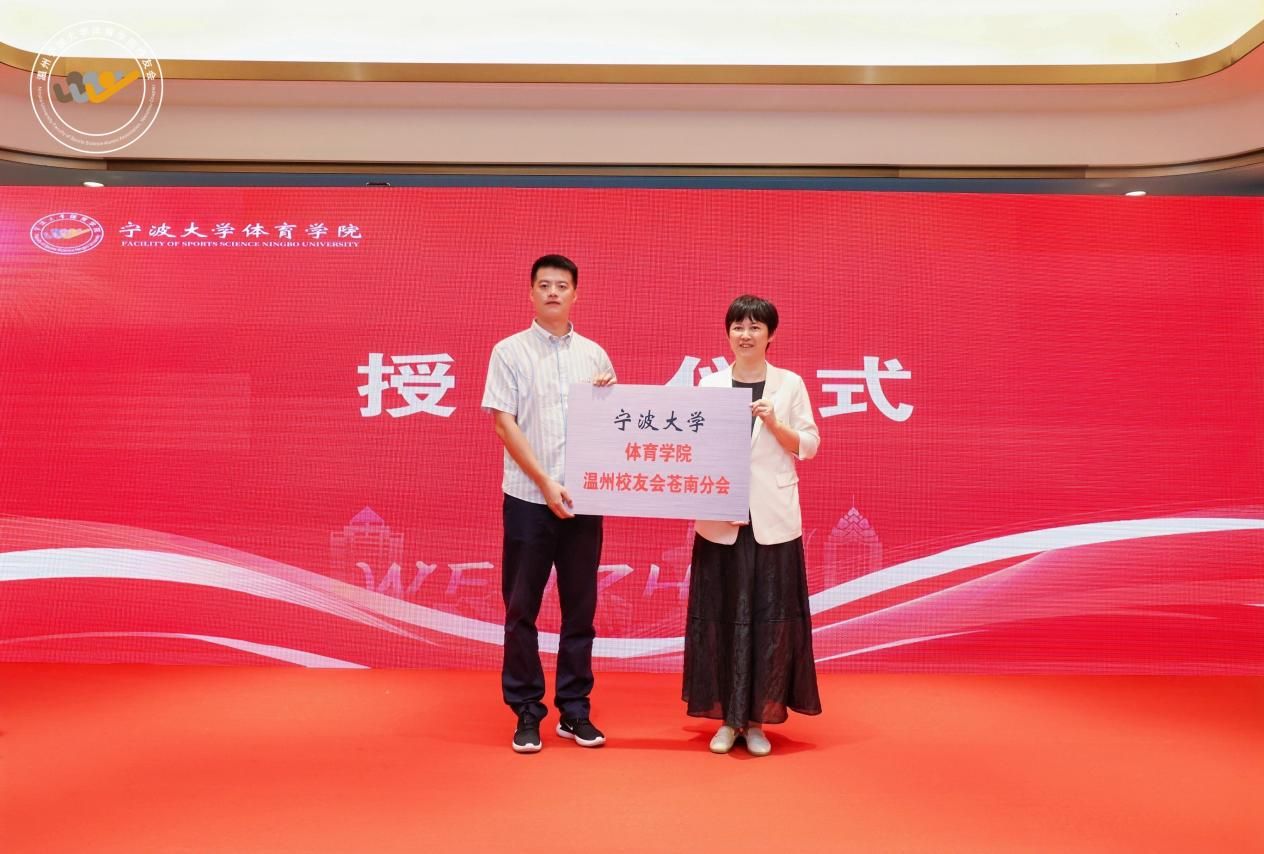童莹娟向宁波大学体育学院温州校友会苍南分会授牌