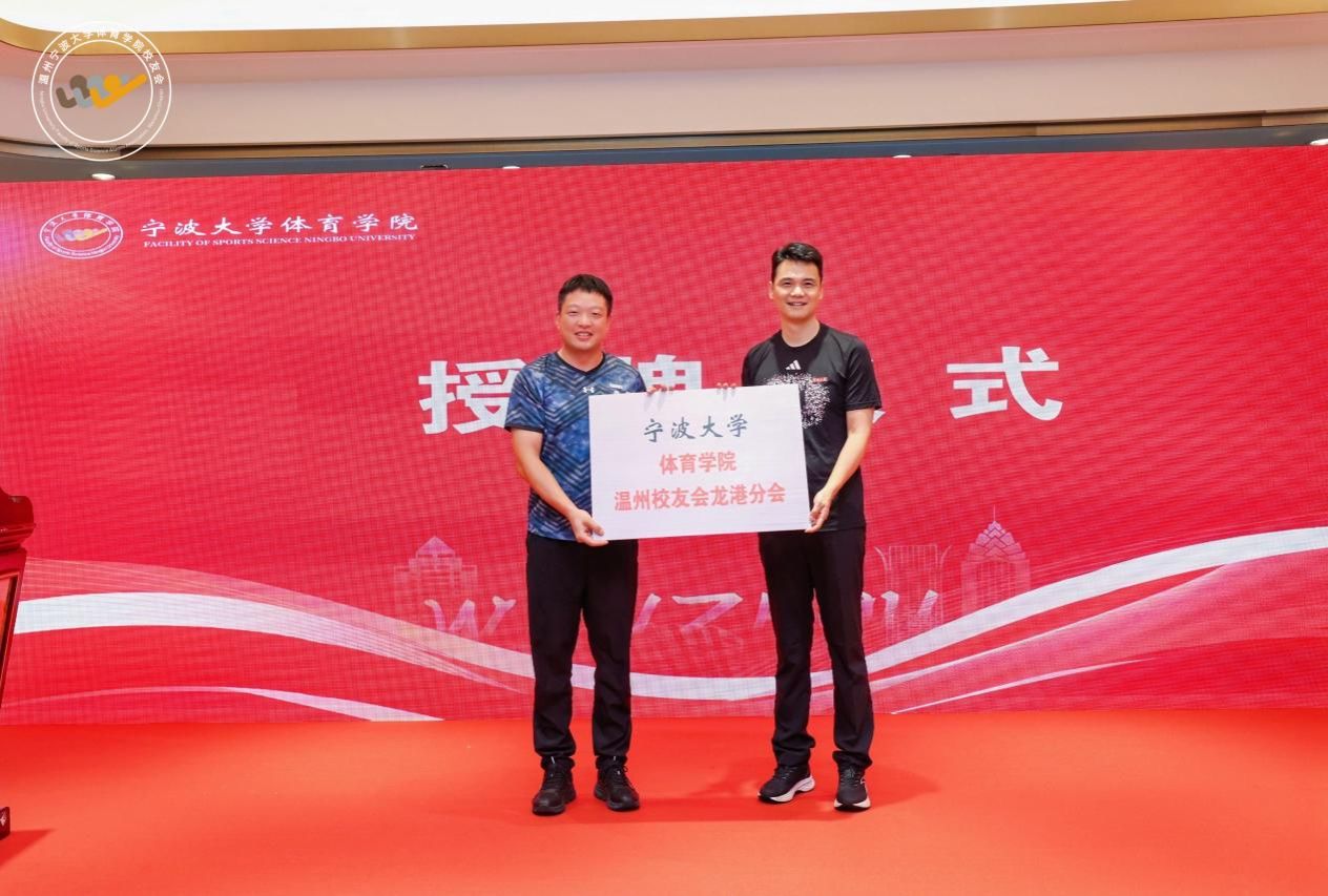 任峰向宁波大学体育学院温州校友会龙港分会授牌