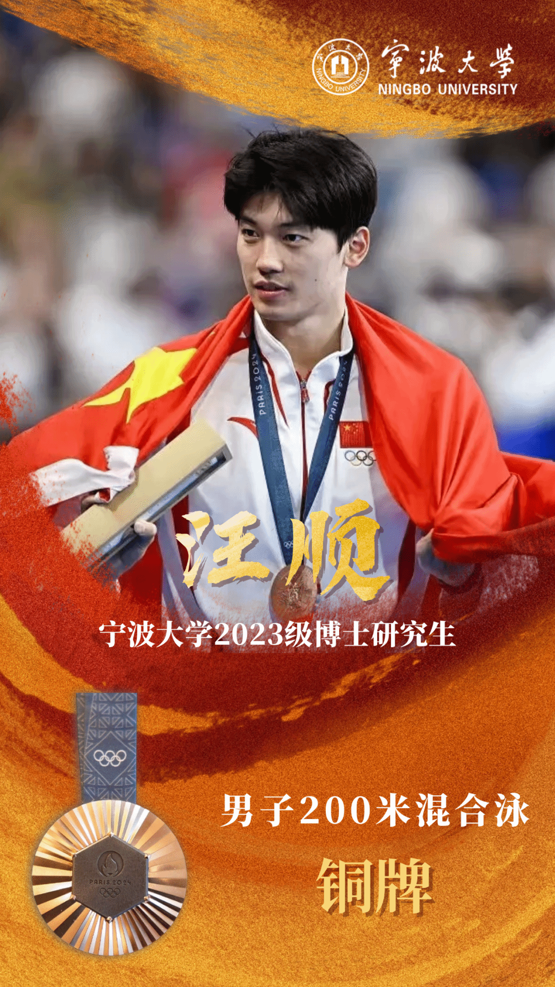石智勇、汪顺、王昶、徐诗晓和曾莹莹在奥运赛场上凭借卓越的竞技实力、顽强的拼搏精神和坚韧的毅力,为国家争得荣誉,也为母校宁波大学增添了光彩。他们的杰出表现不仅是个人体育生涯的辉煌篇章,更是宁波大学体育教育成果的生动例证,极大地激发了广大师生的爱国荣校情怀与体育热情。