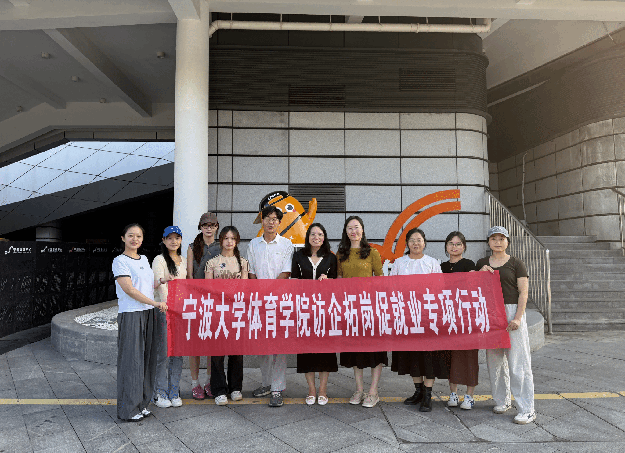 为进一步推动校企合作、拓宽毕业生就业渠道、开发更多优质岗位、提升毕业生就业质量,2024年10月18日,宁波大学体育学院党委副书记胡秋丽、院团委书记陈英英、就业辅导员王鑫带领学生赴宁波奥体中心开展访企拓岗促就业专项行动。