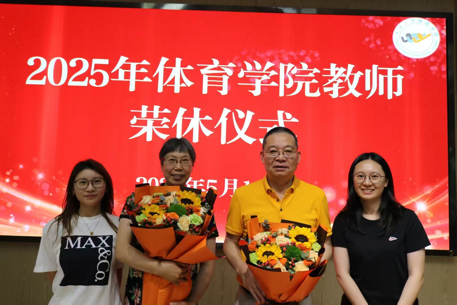 5月14日下午,体育学院分工会于宁大校友之家隆重举办2025年上半年教师荣退休仪式,以最高礼遇致敬两位光荣退休的教师。学院党委书记童莹娟、副书记秋丽以及多名青年教师代表参与活动,现场温情涌动,掌声如潮。